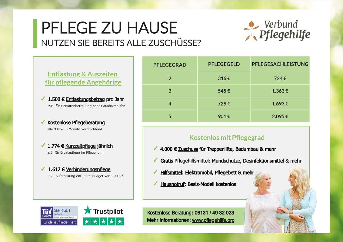 Der Verbund Pflegehilfe hat alle relevanten Zuschussmöglichkeiten für die Pflege zusammengefasst.
